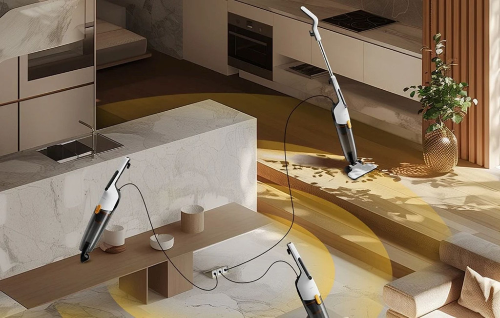 A Deerma DX170 könnyű, ergonomikus kialakítása jelentősen befolyásolja a munkavégzés kényelmét. A készülék súlya mindössze 1,65 kg, ami megkönnyíti a manőverezést, még például ablakkeretek vagy más nehezen hozzáférhető sarkok tisztításakor is. A 10,8 méter hosszú kábel lehetővé teszi, hogy szabadon mozoghasson a lakásban anélkül, hogy gyakran át kellene kötnie a dugót.