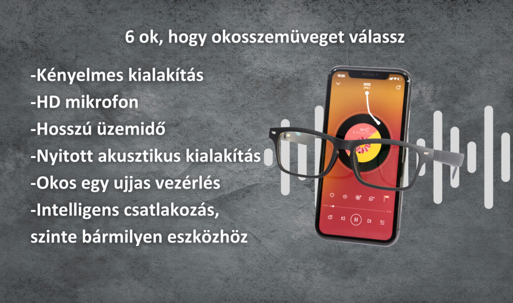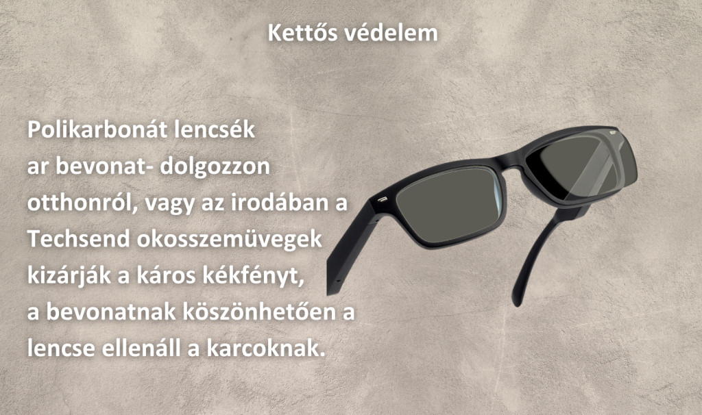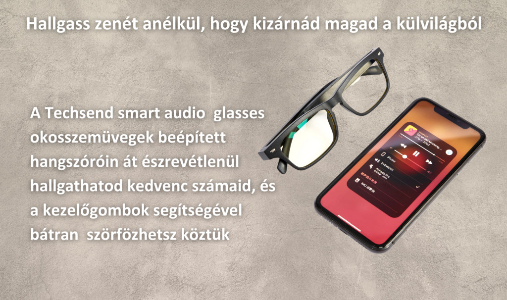 A Techsend Smart Audio Sunglasses Eyewear Okos Napszemüveg észrevétlen társ a mindennapokban, nincs szükség töltőtokra, vezetékekre és nem kell okosórát, headsetet hordanod vagy kivenned a telefont percenként a zsebedből. Fogadd hívásaid vagy hallgasd kedvenc számaid ebben az újító formában. A szemüveg beépített sztereó hangszórói lágyan közvetítik a hangokat közvetlenül a füled megfelelő része felé, úgy hogy ha vezetsz, az utcán sétálsz vagy az irodában vagy ne maradj le semmiről.