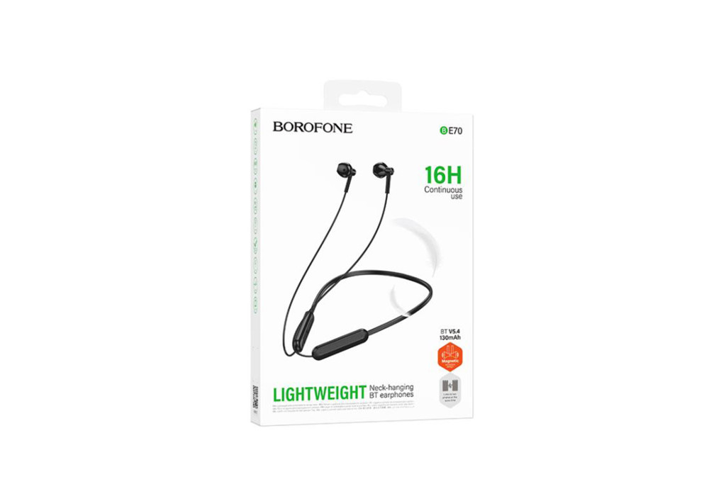 A BOROFONE BE70 Light Sport Bluetooth Fülhallgató fekete színben a sportolók és aktív életet élők számára kifejlesztett vezeték nélküli headset. A fülhallgató a legújabb Bluetooth 5.4 technológiát (JLAC7003 chip) alkalmazza, amely rendkívül stabil, gyors és energiahatékony kapcsolatot biztosít. Ez a headset kiváló hangminőséget nyújt, tiszta hangokkal és dinamikus basszussal, ami motiválja a teljesítményt. A BE70 igazi erőssége a kiváló akkumulátor üzemidő: a 130mAh-s akkumulátor *akár 16 órányi folyamatos zenelejátszást vagy beszélgetést biztosít egyetlen töltéssel, 200 órás készenléti idő mellett. Az ergonomikus, nyakpántos kialakítás (összesen 85 cm hosszúság) és a kiegészítő fülhorog biztonságos és kényelmes illeszkedést garantál, megakadályozva a fülhallgató kiesését még a legintenzívebb edzések alatt is. Az IPX-5 víz- és izzadásállósági besorolás révén ellenáll az izzadságnak és a fröccsenő víznek, így bátran használható esős időben vagy kemény edzés során. A beépített vezérlőgombokkal könnyedén állíthatja a hangerőt, léptetheti a zeneszámokat és fogadhatja a hívásokat, a beépített HD mikrofon pedig tiszta kihangosított hívásokat tesz lehetővé. Az ultrakönnyű súly (22 g) szinte észrevétlenné teszi. A BOROFONE BE70-nel a zene motivációvá válik! BOROFONE BE70, Sport fülhallgató, Vezeték nélküli headset, Bluetooth 5.4, 16 óra lejátszás, IPX5 vízálló, Fekete sport fülhallgató, Biztonságos illeszkedés, Edzéshez