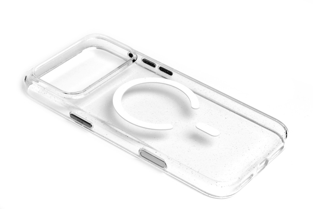 Védje iPhone 17 Pro 6.3" készülékét a BLUEO Crystal Pro MagSafe kompatibilis, csillogó ütésálló tokkal. Ez az átlátszó tok beépített mágnesgyűrűvel rendelkezik, amely tökéletes MagSafe illeszkedést biztosít a töltéshez és a kiegészítőkhöz. A tok ütéselnyelő anyaga és a megerősített sarkok kiemelkedő védelmet nyújtanak. A kristálytiszta átlátszóság elegáns csillámporral van kombinálva, amely különleges ragyogást ad a telefonnak, miközben láttatja a Pro modell dizájnját. A tok ideális választás azoknak, akik a MagSafe funkciót, a robusztus védelmet és a divatos csillogást keresik egy termékben.