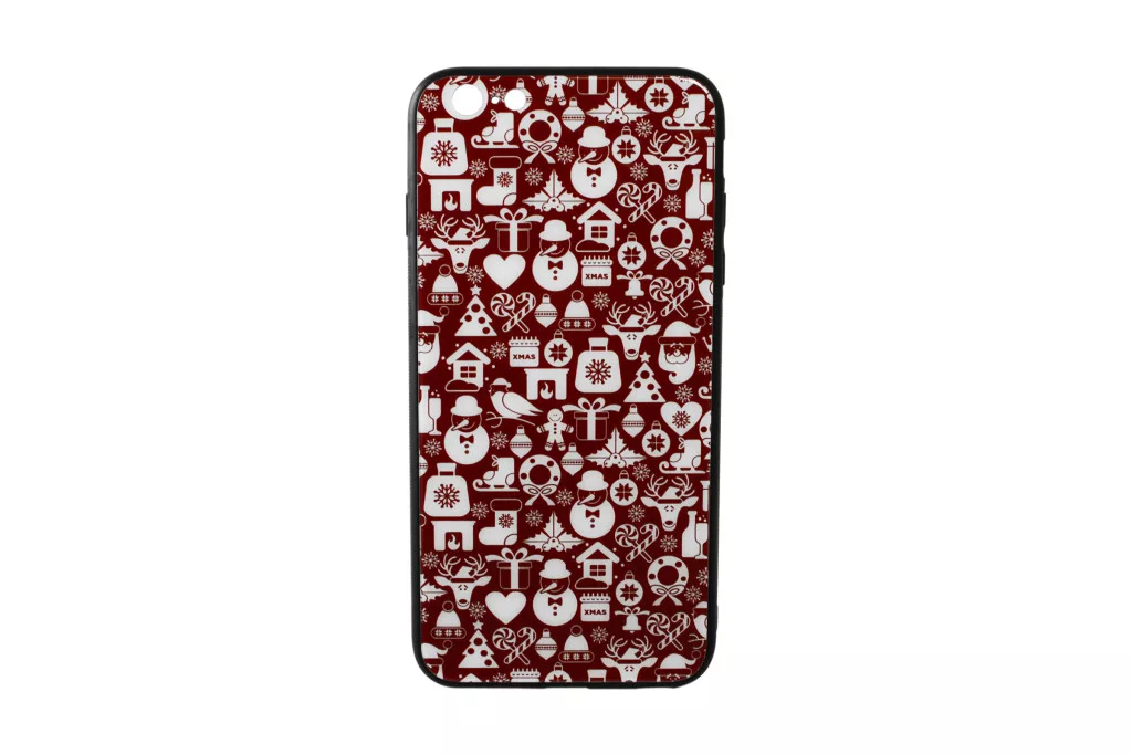Üveges hátlappal rendelkezó telefontok apró karácsonyi mintával iPhone 6 Plus/6S Plus piros-fehér