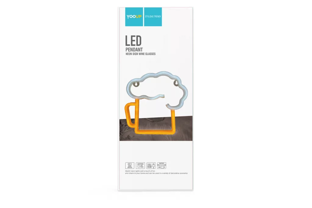 A neon kompakt, négyzetes mérete (22x1.6x22 cm) és a mindössze 1.6 cm-es mélység miatt tökéletes a falra, elegánsan simul a felülethez. A YOOUP a hagyományos gázneon helyett energiatakarékos és biztonságos LED technológiát alkalmaz, amely hosszú élettartamot és minimális hőtermelést garantál, miközben a fényhatás a klasszikus, élénk neon vizuális erejét adja. A YOOUP Beer neonnal a szórakozás, a stílus és a technikai kényelem találkozik egyetlen, lenyűgöző dekorációs elemben, amely a faladat a laza, vendégszerető stílusod kifejezőjévé változtatja.