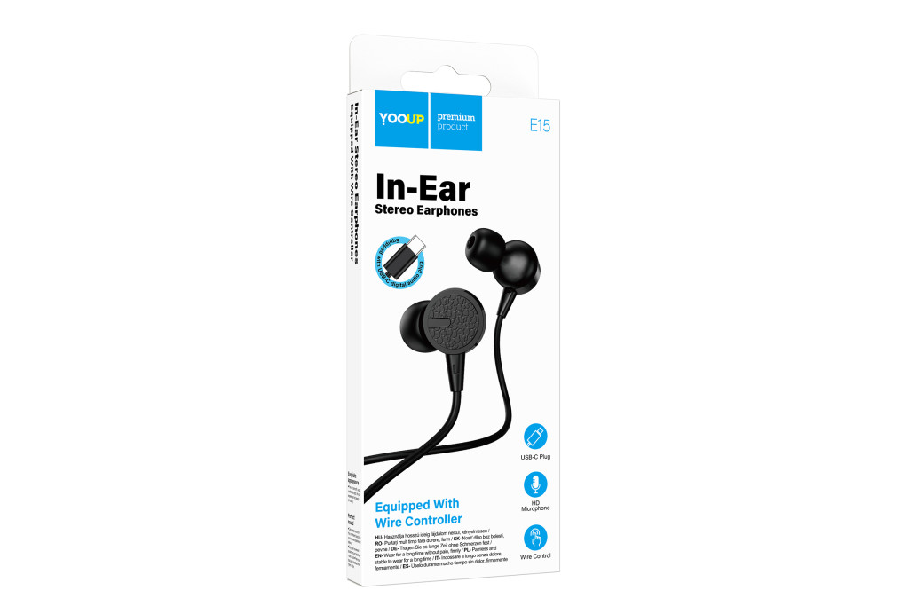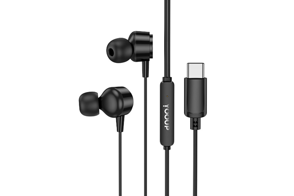 Yooup E15 sztereó vezetékes Type-C fülhallgató, fekete