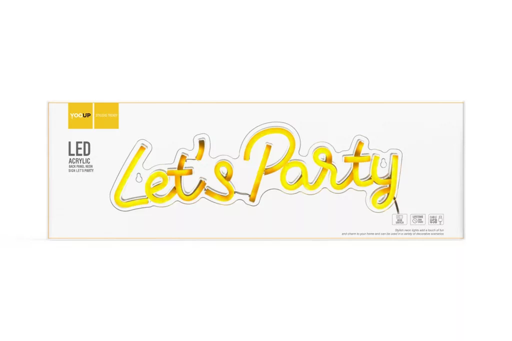 YOOUP Lets Party LED fali neon dekoráció, plexi hátlappal
