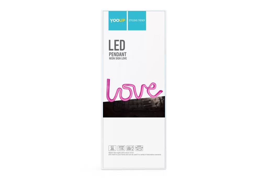 A "Love" felirat széles, de vékony mérete (34x1.6x12.5 cm) elegánsan mutat a falon; a mindössze 1.6 cm-es mélység miatt a dekoráció elegánsan simul a felülethez, minimalista megjelenést kölcsönözve. A YOOUP a hagyományos gázneon helyett energiatakarékos és biztonságos LED technológiát alkalmaz, amely hosszú élettartamot és minimális hőtermelést garantál, miközben a fényhatás a klasszikus, élénk neon vizuális erejét adja. A YOOUP Love Pink neonnal a romantika, a stílus és a technikai kényelem találkozik egyetlen, lenyűgöző dekorációs elemben, amely a faladat a személyes, érzékeny stílusod kifejezőjévé változtatja.